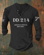 Men's DD214 America Official Man Card Print Casual Long Sleeve Top